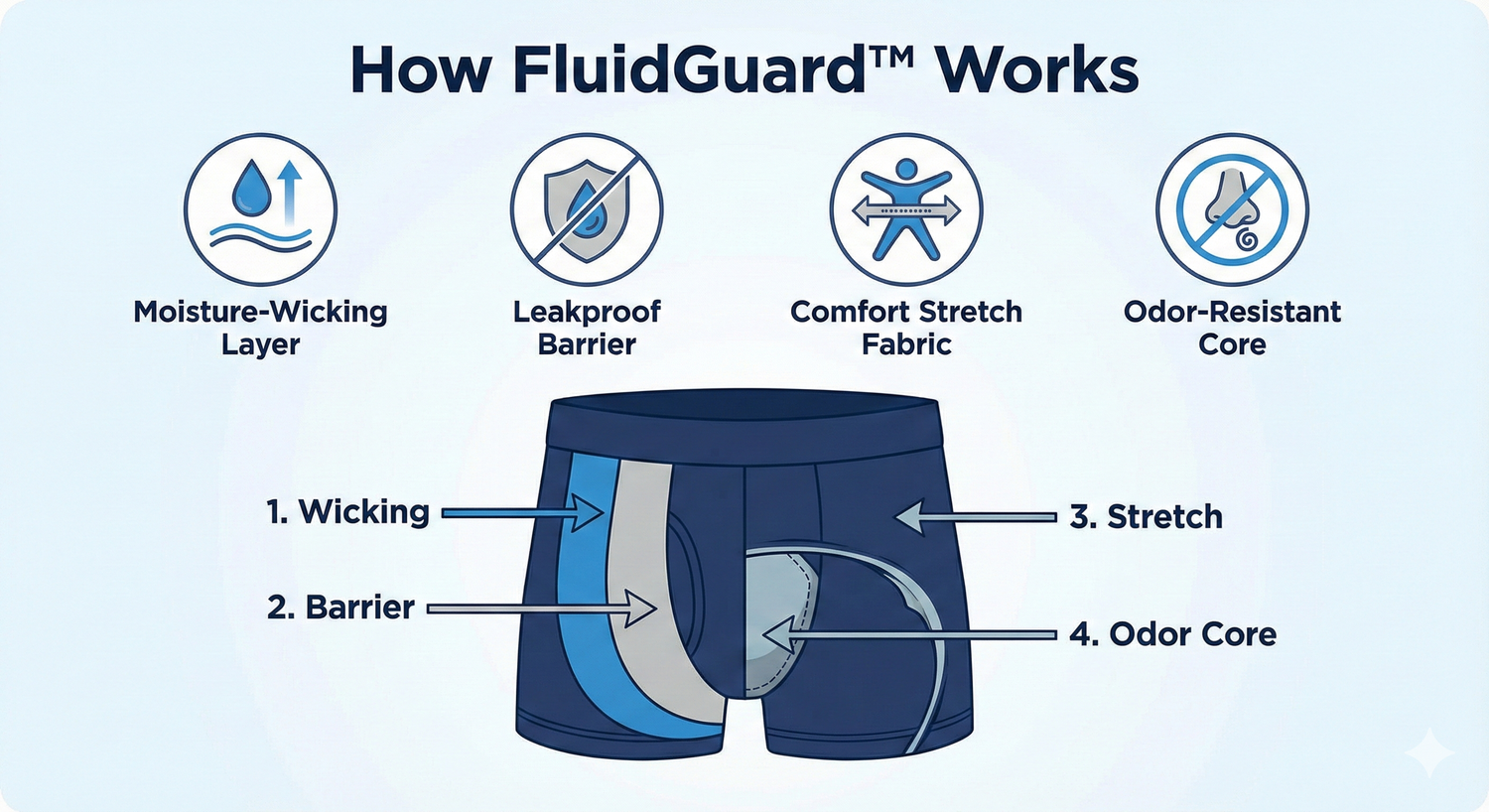 FluidGuard™ traps moisture instantly while the outer layer stays dry and soft.